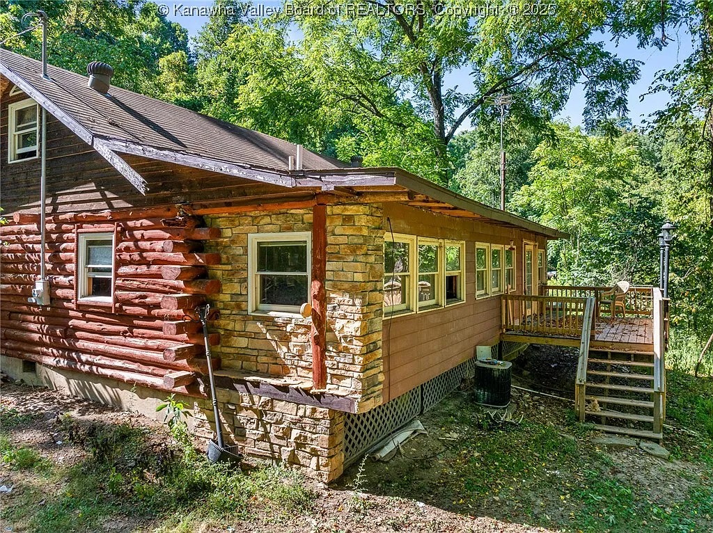 This secluded property in Lesage, West Virginia offers exceptional privacy, expansive space, and a slower rural lifestyle. The log cabin, built in the late nineties, sits at the end of a long private driveway, creating immediate separation from traffic, noise, and surrounding development. Open land and wooded surroundings frame the home on all sides, giving the property a peaceful and grounded atmosphere. Life here feels intentional, shaped by nature rather than schedules, with quiet mornings and unhurried evenings.